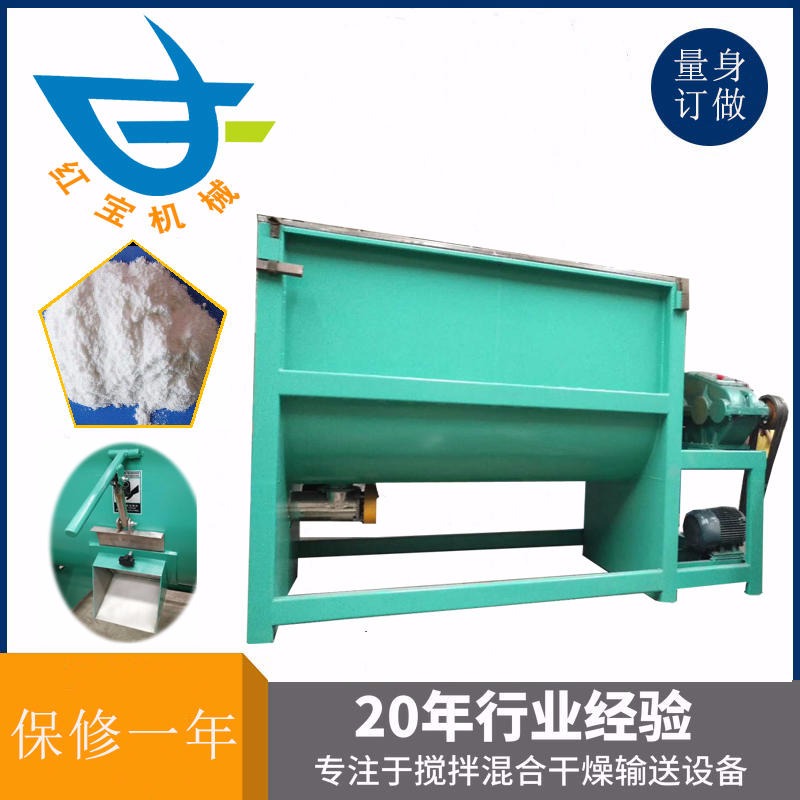 1、干粉臥式攪拌機應設置在平坦的位置,用方木墊起前后輪軸,使輪胎擱高架空,以免在開動時發生走動。